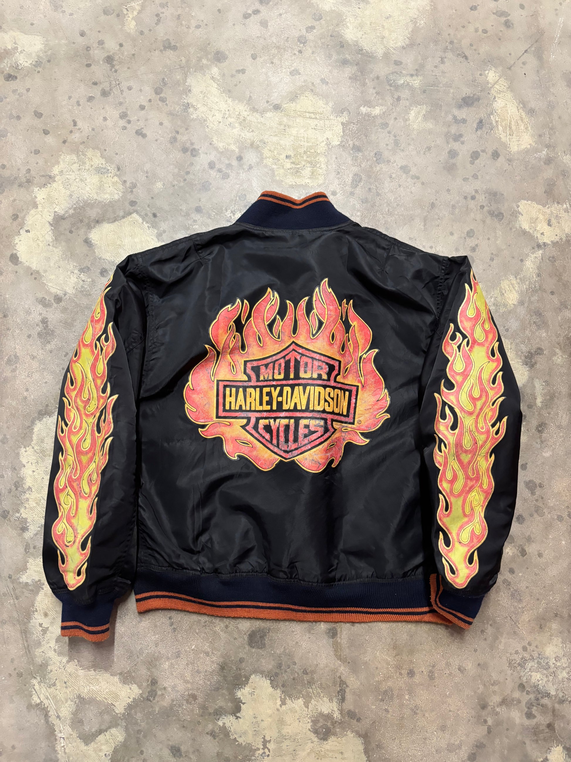 Vintage Harley Davidson Bomber satin flame jacket size large
